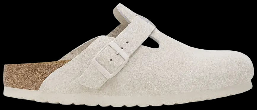 ה־Birkenstock Boston הוא סמל של נוחות ועיצוב אלגנטי עם מראה קלאסי ונצחי. הדגם עשוי מעור או זמש איכותי בעבודת גימור מוקפדת, וכולל סוליית Cork-Latex אנטומית המותאמת למבנה כף הרגל לנוחות מרבית לאורך כל היום